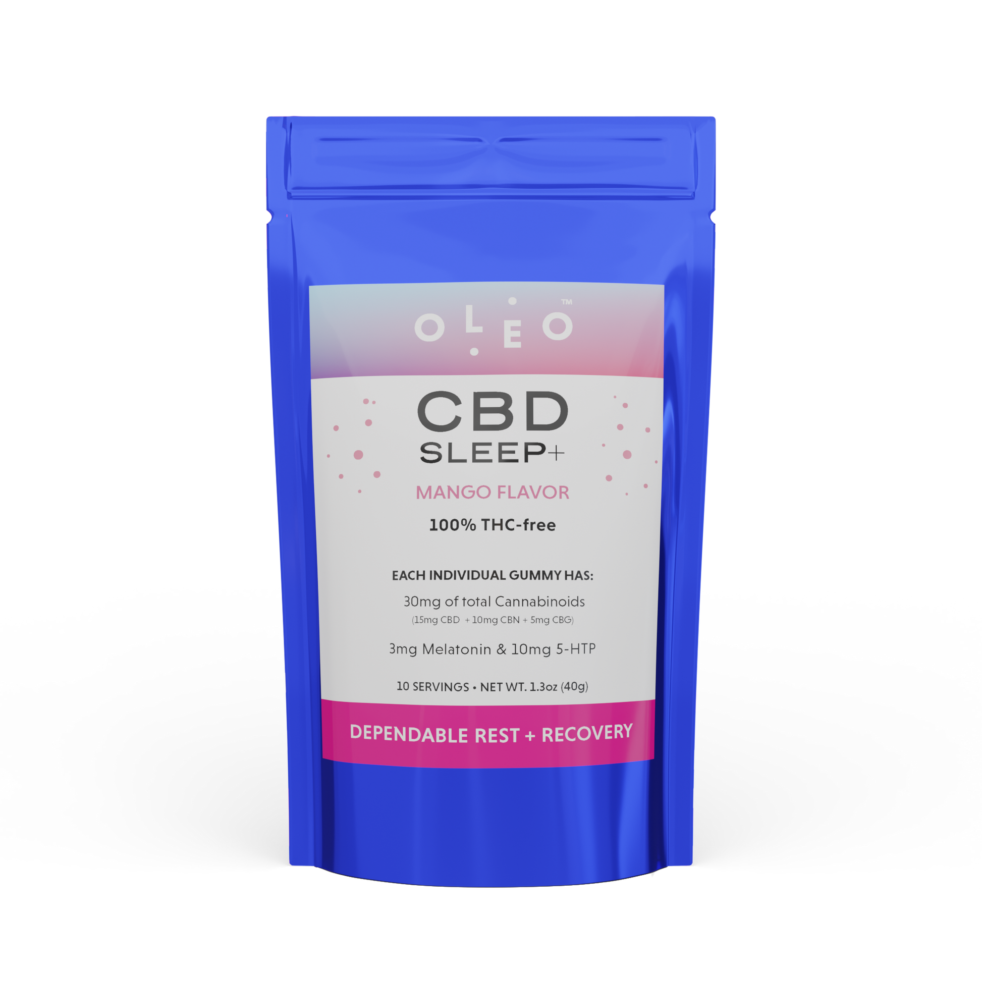 Quality sleep correlates to a higher quality of life. Made with U.S.A.-grown hemp, OLEO Sleep Gummies were created to offer our customers a simple, discrete way to consume a delicious Mango Cannabinoid supplement. Each Sleep Gummy jar contains 900mg of Cannabinoids in total (450mg CBD, 300mg CBN, and 150mg CBG) to offer ~30 servings of relaxation and sleep.